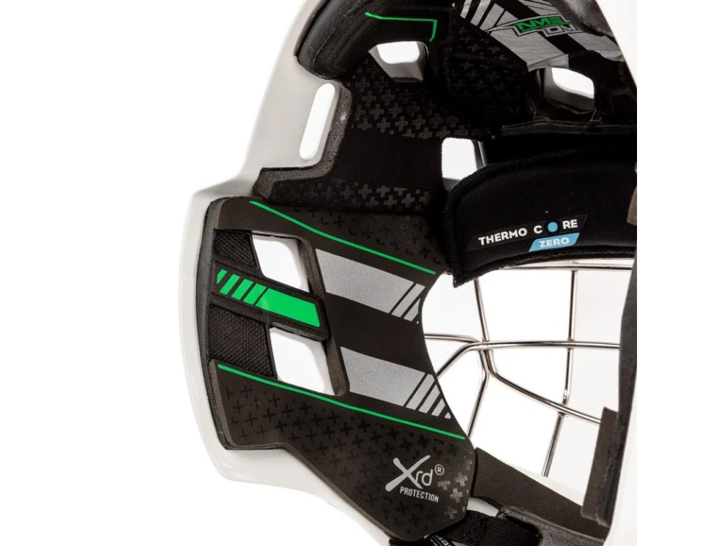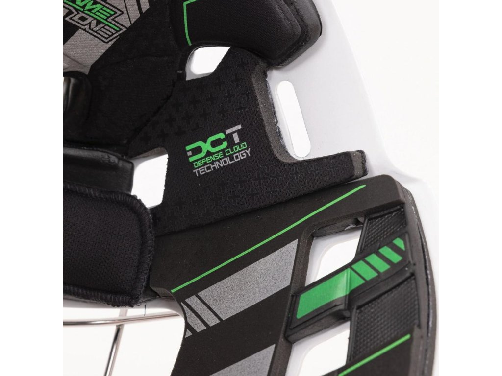 S hmotnosťou úžasných 1,18 kg je to jedna z najľahších profesionálnych masiek na trhu. Táto úžasná hmotnosť je dosiahnutá pomocou ACL(Advanced Carbon Layering) v celej maske. ACL bolo použité aj pre riadenie nárazu puku s hrubou bradou, aby sa zabránilo odštiepeniu. Ochraná pena DCT (Defence Cloud Tech) je mäkšia, komfortnejšia, poskytuje špičkovú ochranu ochranu proti nárazu a ľahší odvod potu. Systém SAW (Shock Absorbing Wire) v mriežke dokonale absorbuje zásahy pukov. Polstrovanie v nárazových a tlakových zónach v oblasti tvári je pomocou materiálu Poron, ktorý poskytuje profesionálnu úroveň ochrany a pohodlia Nastaviteľný päťbodový zadný kryt dokonale fixije masku na hlave. Potítko Thermocore Zero skvelé odvádza vlhkosť, pomáha regulovať telesnú teplotu. Sušenie je potom oveľa rýchlejšie oproti tradičným materiálom.