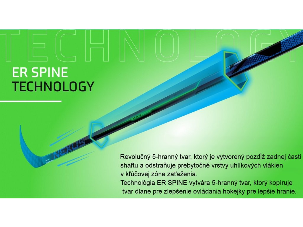 - ER Spine Technology – Revolučný päťhranný tvar, ktorý je vytvorený pozdĺž zadnej časti shaftu kopíruje tvar dlane pre zlepšenie ovládania hokejky. Vďaka zmene geometrie shaftu sa mohli odstrániť prebytočné vrstvy uhlíkových vlákien v kľúčových zónach, kde sa hokejka prehýba a tým tak ešte viac zvýrazniť bod stredného ohybu, ktorý je typický pre hokejky Nexus. Vďaka tejto zmene sa docielilo redukcie váhy, rýchlejšiemu prenos energie do čepele a ľahšiemu prepruženiu hokejky do strely. Nový päťhranný tvar shaftu maximalizuje cit a kontrolu pri vedení puku.