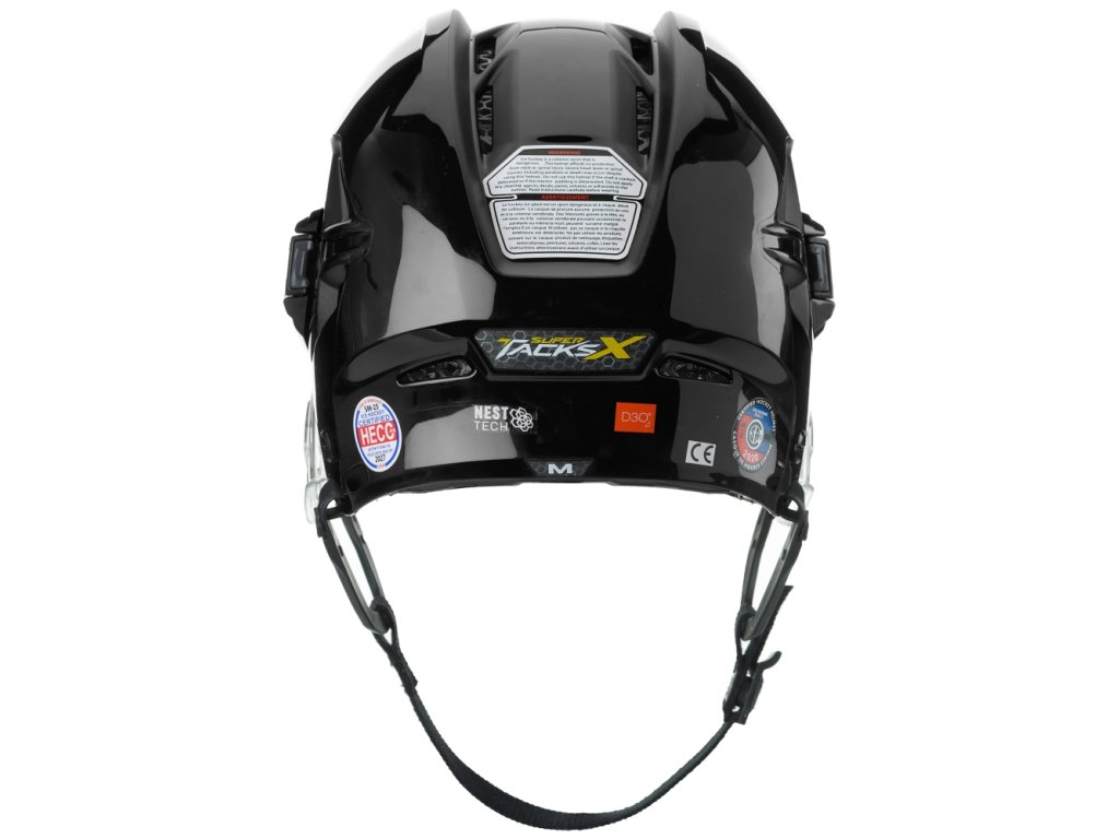 Hokejová prilba CCM SUPER TACKS X je špičkový model určený pre profesionálnych hráčov. Je spojením výskumu a vývoja meniace štýl hry a inovatívneho výrobného postupu postaveného na digitálnu 3D technológiu. Zažite komfort, priedušnosť a ochranu skutočne novej úrovne s prilbou CCM Super Tacks X, ktorá je vybavená vôbec prvou vytlačenou vložkou Nest Tech 3D.