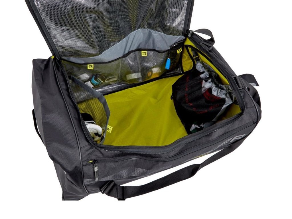 Veľké postranné kapsy, jedná rozmerovo určené pre odkladanie korčuli a druhá kapsa pre uloženie prilby, ribaná a ostatné veci. Obsahuje tiež vnútorný sieťový organizér na ďalšie drobností.