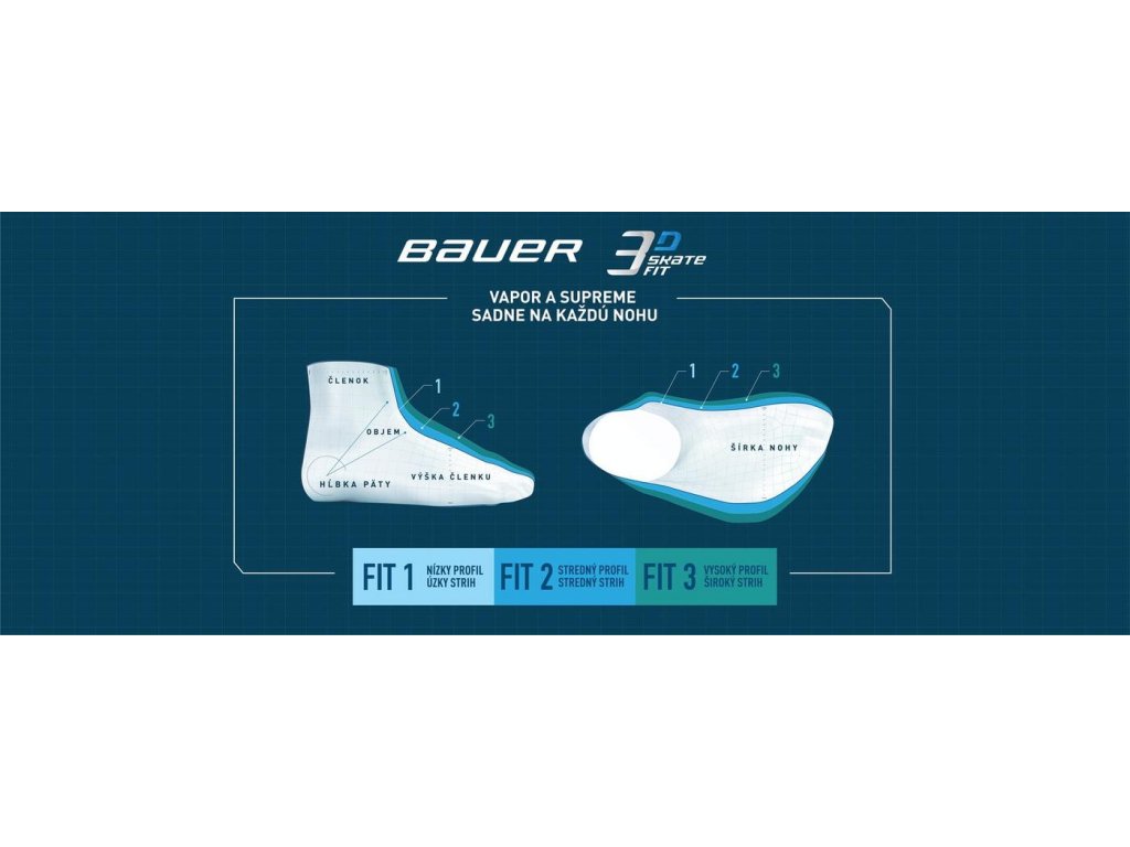 Novinka sezóny 2022/2023. Korčule BAUER S22 Supreme M4 Intermediate sú určené pre pokročilých a poloprofesionálnych hráčov. Nová konštrukcia topánky zavádza nový štandard výkonu na ľade aprispôsobovaniu sa hráčovi. Inovovaný dizajn pomáha znižovať hmotnosť, zdokonaľuje oporu členku a zároveň maximalizuje výkon a dynamiku pohybu. Nový systém 3D Performence Fit určenie správnej veľkosti pre hráča s označením FIT1, FIT2, FIT3. Korčule sú navrhnuté a vyrobené pozdvihnúť vašu hru na novú úroveň rýchlosti.