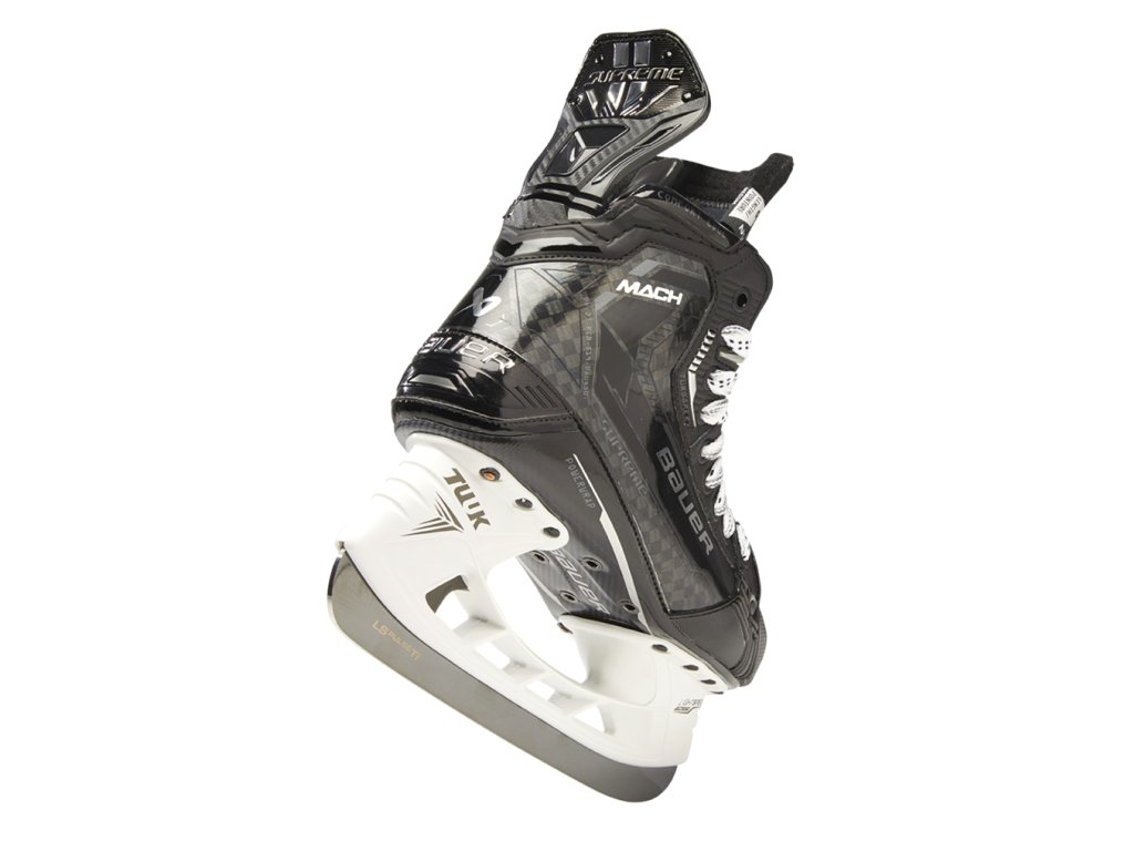 Korčule BAUER S22 TI Supreme MACH Intermediate sú navrhnuté pre elitných profesionálnych hráčov tak, aby maximalizovali výkon a kontrolu. Sú vrcholom pokroku v technologickej a materiálovej revolúcii čoho výsledkom sú korčule Supreme MACH. Nová konštrukcia topánky zavádza nový štandard výkonu na ľade, Inovovaný dizajn pomáha znižovať hmotnosť, zdokonaľuje oporu členku a zároveň maximalizuje výkon a dynamiku pohybu. Korčule sú navrhnuté a vyrobené pozdvihnúť vašu hru na novú úroveň rýchlosti.