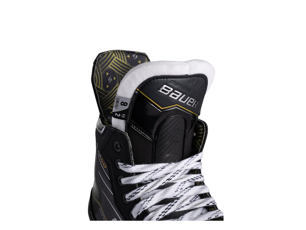 Korčule BAUER S24 Supreme M40 sú vyrobené z revolučného CURV Composite materiálu, ktorý umožňuje tepelné tvarovanie. To znamená, že korčule sa dokonale prispôsobia tvaru vašich nôh, čím zabezpečia maximálny komfort a podporu. Už žiadne bolestivé otlaky alebo diskomfort – len čistý výkon a pohodlie.