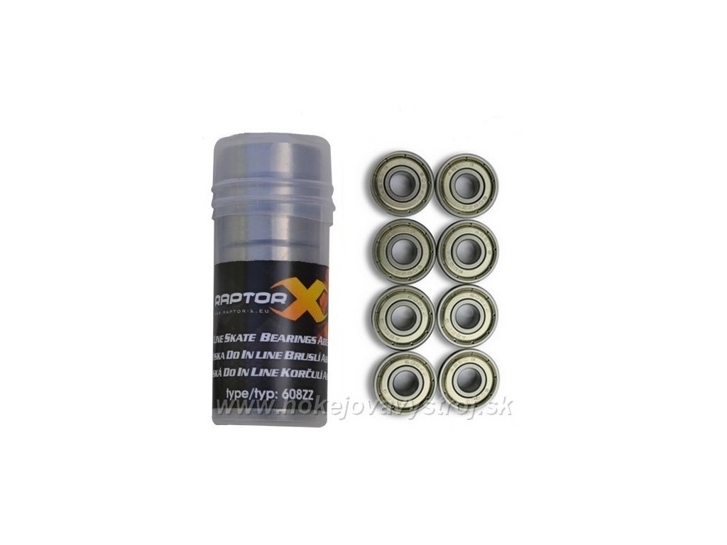 Kvalitné ložiská Raptor-X Abec 9 sú vhodné do všetkých typoch fitnes a inline korčulí, kolobežiek, skateboardov, ktoré majú kolieska klasického stredu 608. Ložiská sa vyznačujú výrazne menším valivým odporom a dlhšou životnosťou. Ložiská sú predávané v tube po 8 ks, čo je počet potrebný na osadenie jednej korčule.